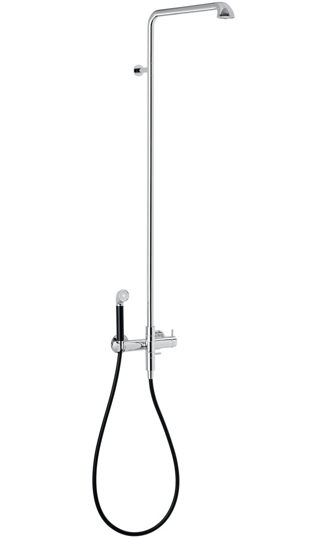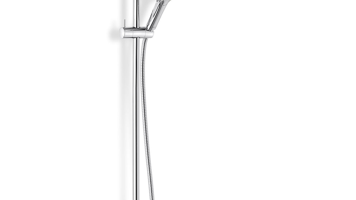 The design of the shower system A-Pex is focussed on minimalist Danish aesthetics coupled with functionality. The newly developed dual shower allows using head and hand shower simultaneously. The unobtrusively elaborated thermostat enables easy and intuitive handling. The colour mix of chrome and matte black hand shower ensures a striking look.