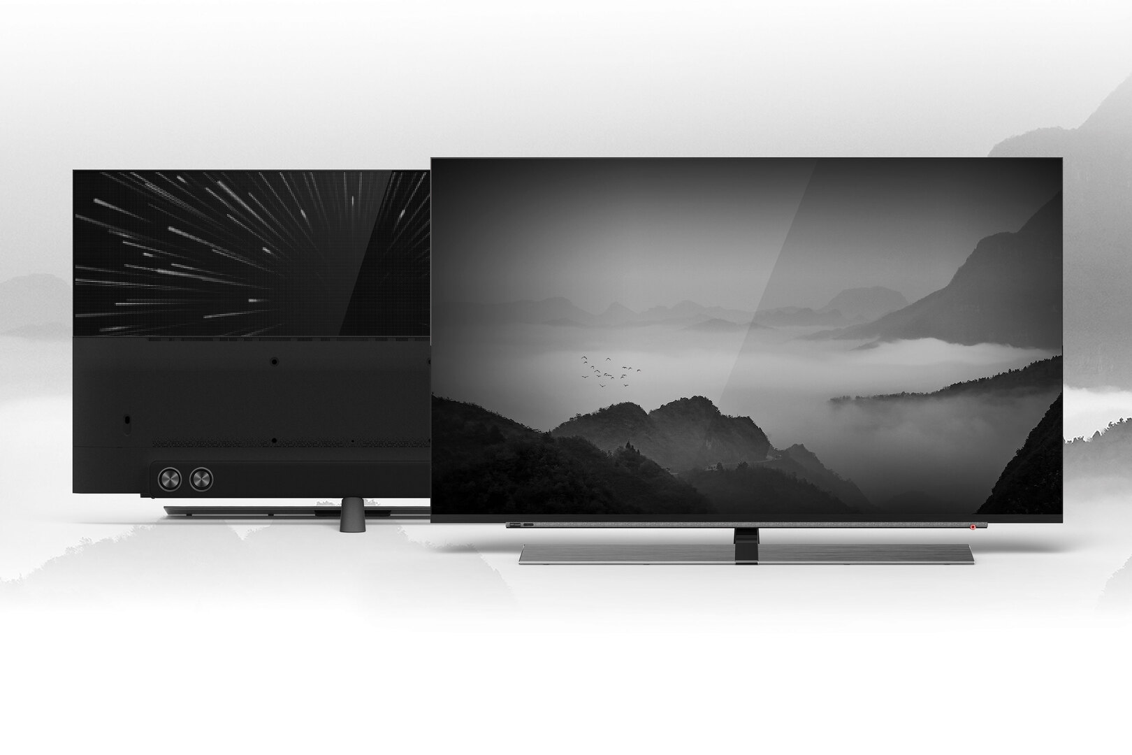 The design of the flying wing-shaped base is inspired by eagles in flight. Brushed metal form a solid base with a high-grade impression. The external sound system is an innovative way to build visual and aural delight. In addition, a landing base is available in a larger format television and thus particularly suited for big spaces. A soundbar accessory is also designed to complement the television to maximise the quality of sound.