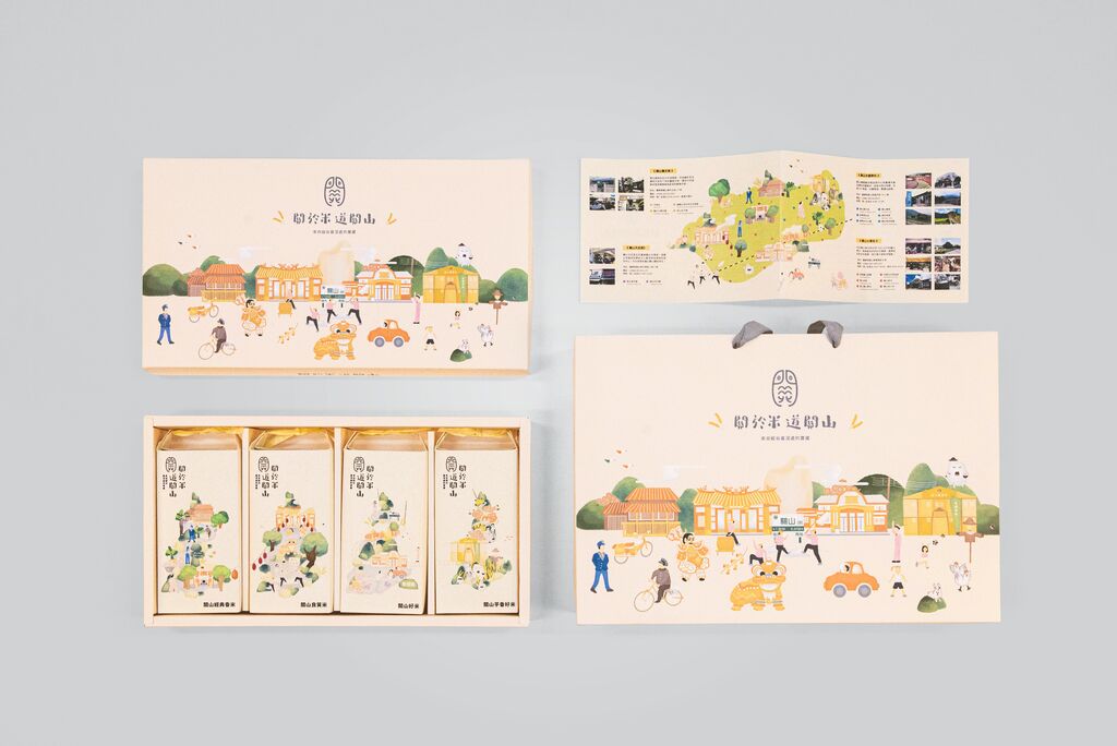 In accordance with the brand name, this packaging design tells stories about Guanshan and the rice grown in this region. A decorative cardboard box holds four individual packages featuring illustrations in soft pastel shades. These refer to characteristic buildings and to the culture of Guanshan: the Police Historical Relics Museum, the old railway station, the Tianho Temple and the Rice School. The contour of the illustrations corresponds to the shape of Guanshan on a map. The packaging is made of simple, handmade paper and is closed with a hemp ribbon.