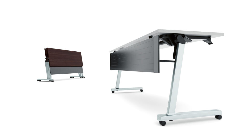 The accorsa folding table is a piece of furniture designed for resilience and mobility for conference and training rooms. Self-locking castors are linked to the movement pattern of the tabletop: when the unit is horizontal, the castors are automatically locked; when it is tilted, the brakes are released so that the table can easily be moved. The additional brake levers under the tabletop are released without tilting the top and can easily be moved for a slight change of location, improving the mobility. Movement and locking mechanisms are hidden in the tabletop and legs for visual tidiness. The jury was impressed by the functional and self-explanatory mechanism, which remains hidden in the unobtrusive design.