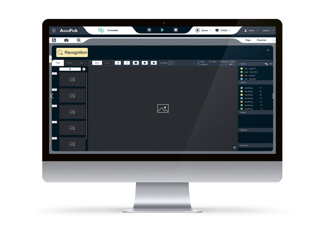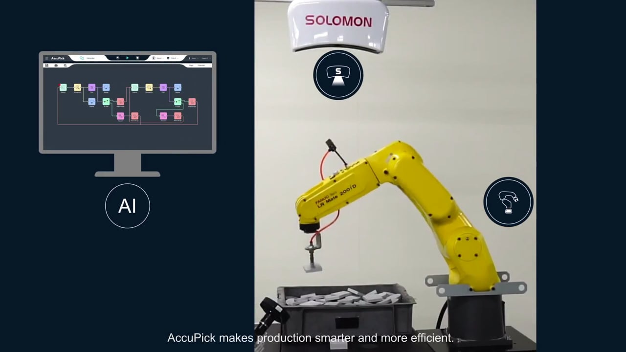 Solomon’s AccuPick is an AI-based system that connects a robot arm and a 3D vision camera. It features an intuitive, concise and easy-to-use interface, the main objective of which is to create intelligent production lines, allowing also users who are less familiar with coding to easily operate the system. Administrators are provided with preconfigured modules that allow users to quickly build projects by a simple drag-and-drop approach – adaptable to the diverse production line requirements across the most different industries. Moreover, with its clean and logical design, AccuPick also provides a variety of functions that can adapt to a wide set of objects that are handled in different production lines. Based on the collected information, the system is able to improve the efficiency of each machine, giving operators a smooth experience and enhancing the organisations’ overall performance by creating truly smart production lines.