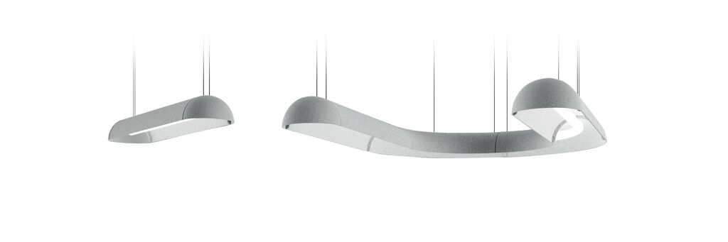 The Acoustic Team office lamp combines innovative sound dampening properties with a sensually appealing design language. Based on a cleverly thought-out modular design, it allows different configurations that can also be adapted to the interior in terms of colour. It thus creates a new aesthetic for office environments and provides planners and architects with a wide range of options.