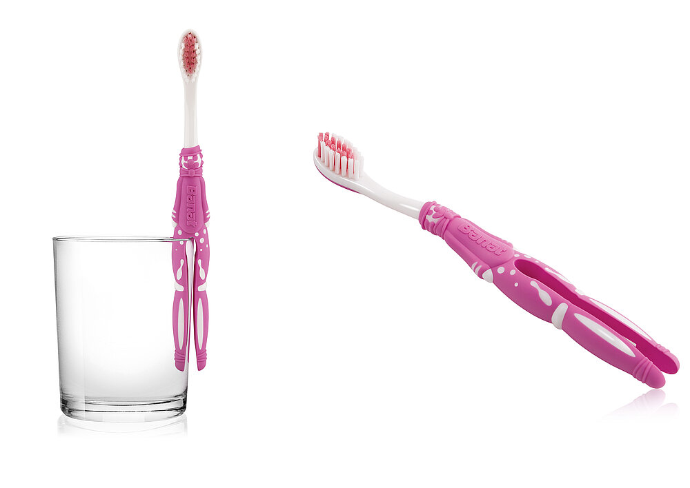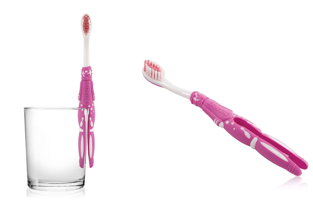 Acrobat Junior is a new generation of toothbrushes for paediatric dental hygiene. Its innovative split-body design means it can be positioned neatly and tidily on the rim of the toothbrush mug. This not only keeps the wash basin area tidy, but also promotes hygiene. Acrobat Junior’s lightweight split body looks like a standing clown in order to make toothbrushing more appealing to children.