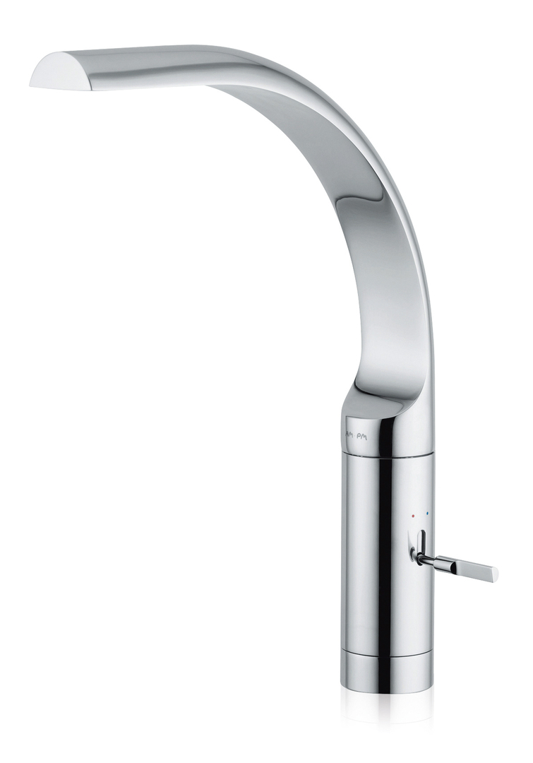 The design of the single-lever basin mixer Admire is characterised by its clean, elegant form, which skilfully integrates the control lever.