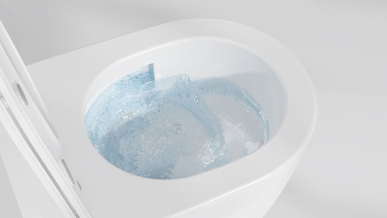 The toilet fascinates with its almost sculptural aesthetics achieved by the closed and gently curved form as well as a purist colour scheme.