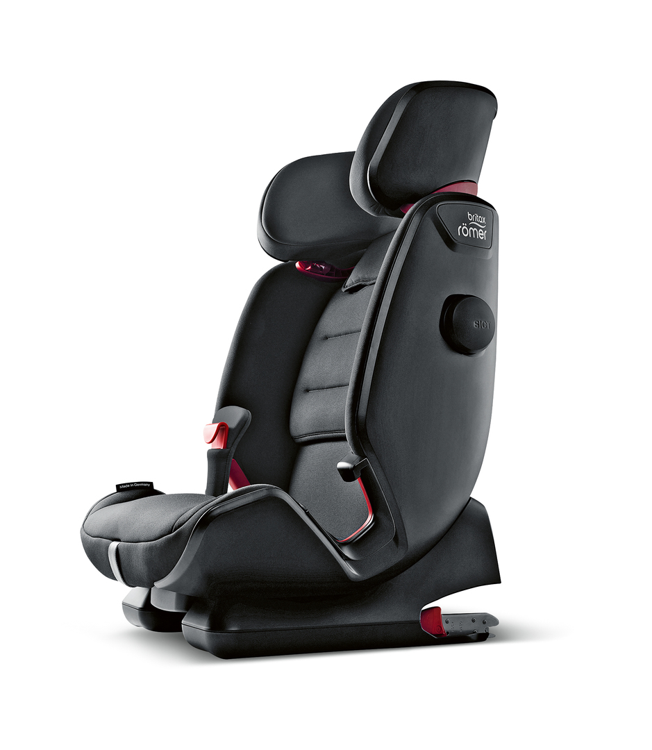 When designing the Advansafix IV, the aim was to create a product for the 1 / 2 / 3 market which combines a high level of safety, comfort and durability with an elegant appearance. Initially, the seat is used with a five-point harness. A later conversion to the 2 / 3 group child seat, thanks to the Flip&Grow function, is possible with just few hand movements. The integrated harness is stored behind the cover of the backrest and the shoulder pads are folded out. The side wings add strength to the side impact protection.