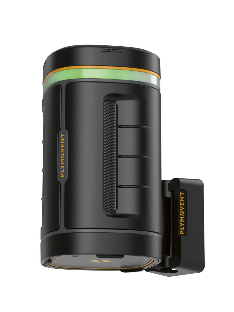 AeroGuard is a compact air monitor for real-time monitoring of the indoor air quality. Air inlets and sensors integrated unobtrusively into the gently rounded, matt-black casing ensure constant measurement of relevant pollutants, including fine dust, volatile organic compounds and CO₂, as well as temperature, humidity and other indoor climate parameters. A 360-degree LED display immediately indicates the current air quality using traffic light colours. Data is monitored and analysed via an app or a web portal.