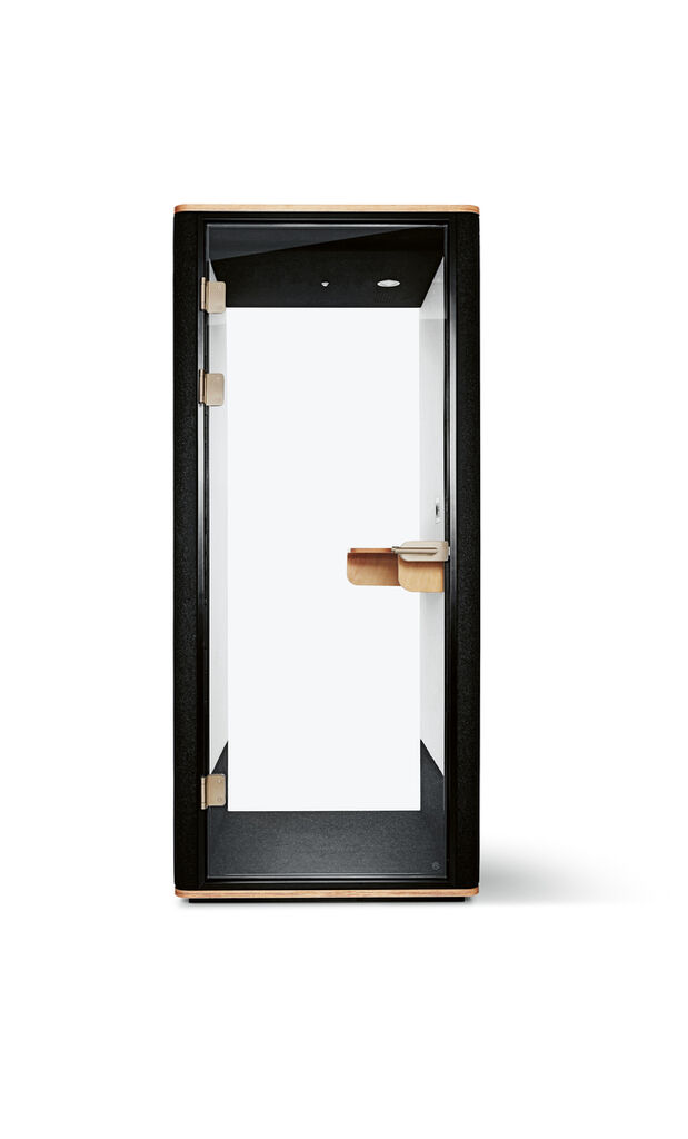 Ahrend Silence CALL is part of the next generation space-in-space solutions that brings back silence to current workspaces. Without making big changes, the phone booth offers flexibility to adapt the setting of a work environment. The composition of wood, fabric and acoustic and insulating material ensures a noise reduction of up to 47 decibels. The height-adjustable stool and small table offer enough comfort, completed with light and ventilation that automatically switch on and off.
