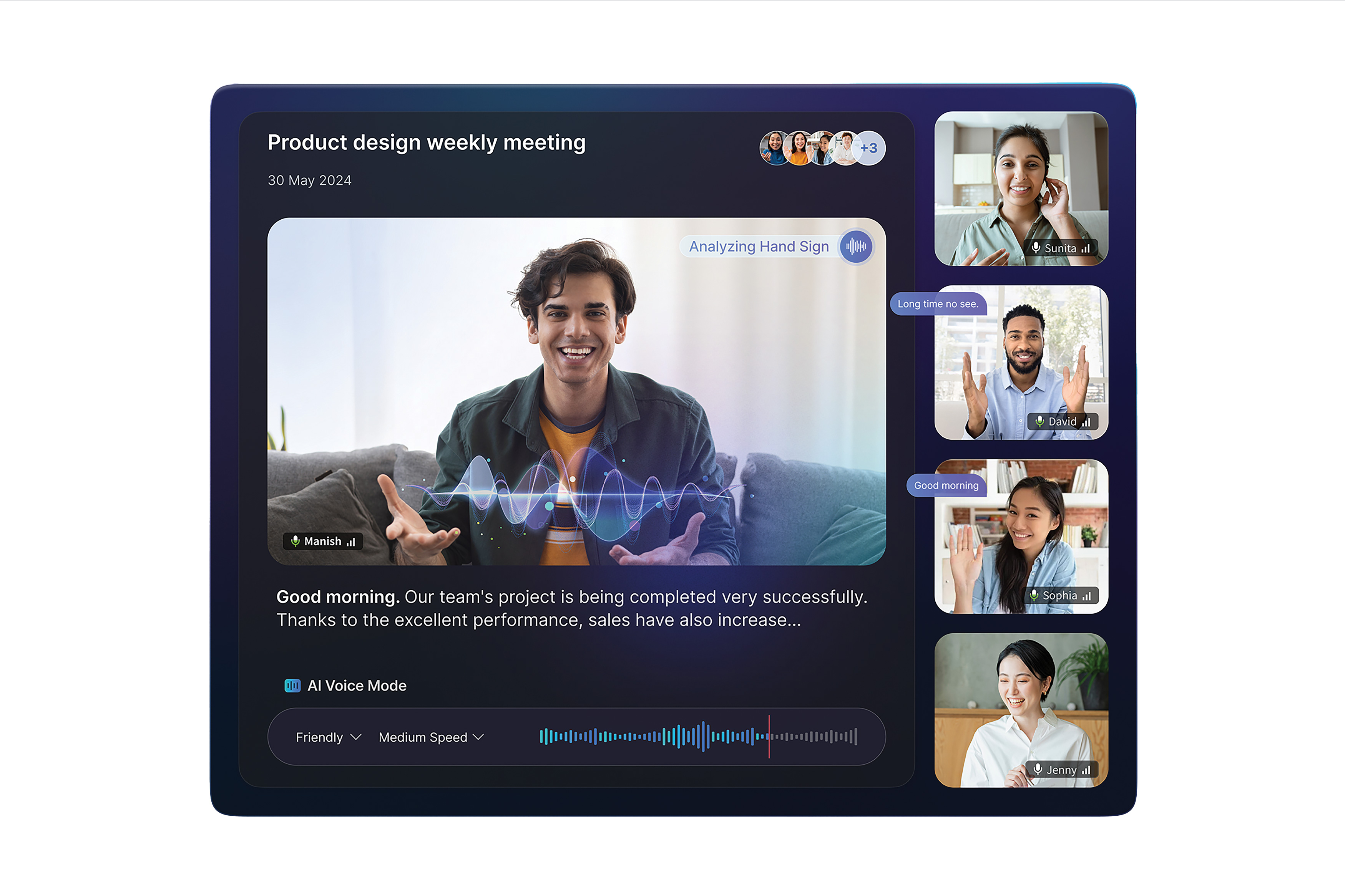 AI Stella-Agent transforms virtual meetings through AI-driven voice and video transformation, real-time translation, and dynamic summaries. When communicating, it improves voice delivery, boosts confidence, and ensures accessibility by converting text, speech, and sign language seamlessly across languages. Reliable in any setting, AI Stella-Agent filters distractions and provides colour-coded meeting insights that foster clarity, inclusivity, and engagement in hybrid meetings. Red Dot Award: Design Concept | Concept | Artificial Intelligence