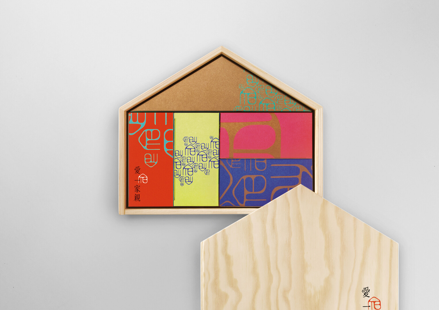 Ai Yi Jia Qin is a non-profit education foundation inspired by the benevolence of the Buddha. Its Chinese name means “family of love”. The foundation markets high-quality food products in order to help underprivileged students and families. To bridge the gap between the general public and traditional religion, contemporary techniques are used. The name of the bodhisattva Amitabha was abbreviated to AMTB to trans- form these letters into an icon, forming the shape of a house. The packaging system is comprised of brightly coloured geometric shapes to distinguish different products.