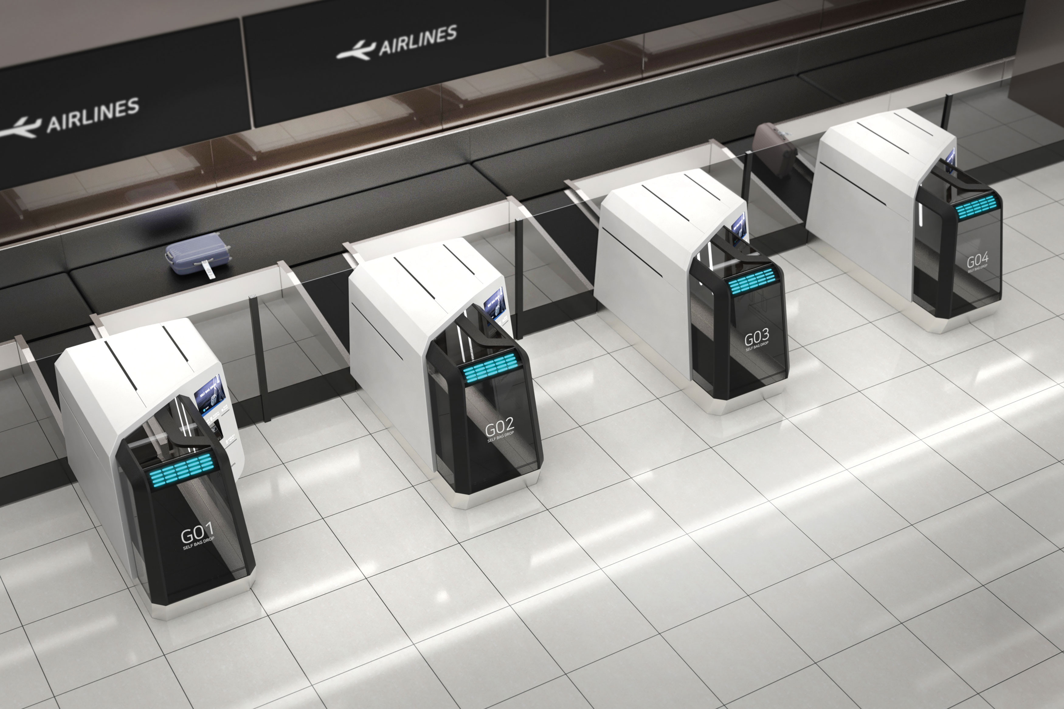 AIM SBD Gen-5 is an innovative airport Self Bag Drop solution that enables an easy and seamless self-check-in experience via intuitive video guidance, synchronised screen prompts, lighting changes, and door operations. The conveyor belt levels with the floor, allowing for easy baggage positioning, and the door opens wide for better access, while transparent glass panels let passengers monitor the process. Red Dot Award: Design Concept | Concept | Tools, Industrial Equipment and Machinery