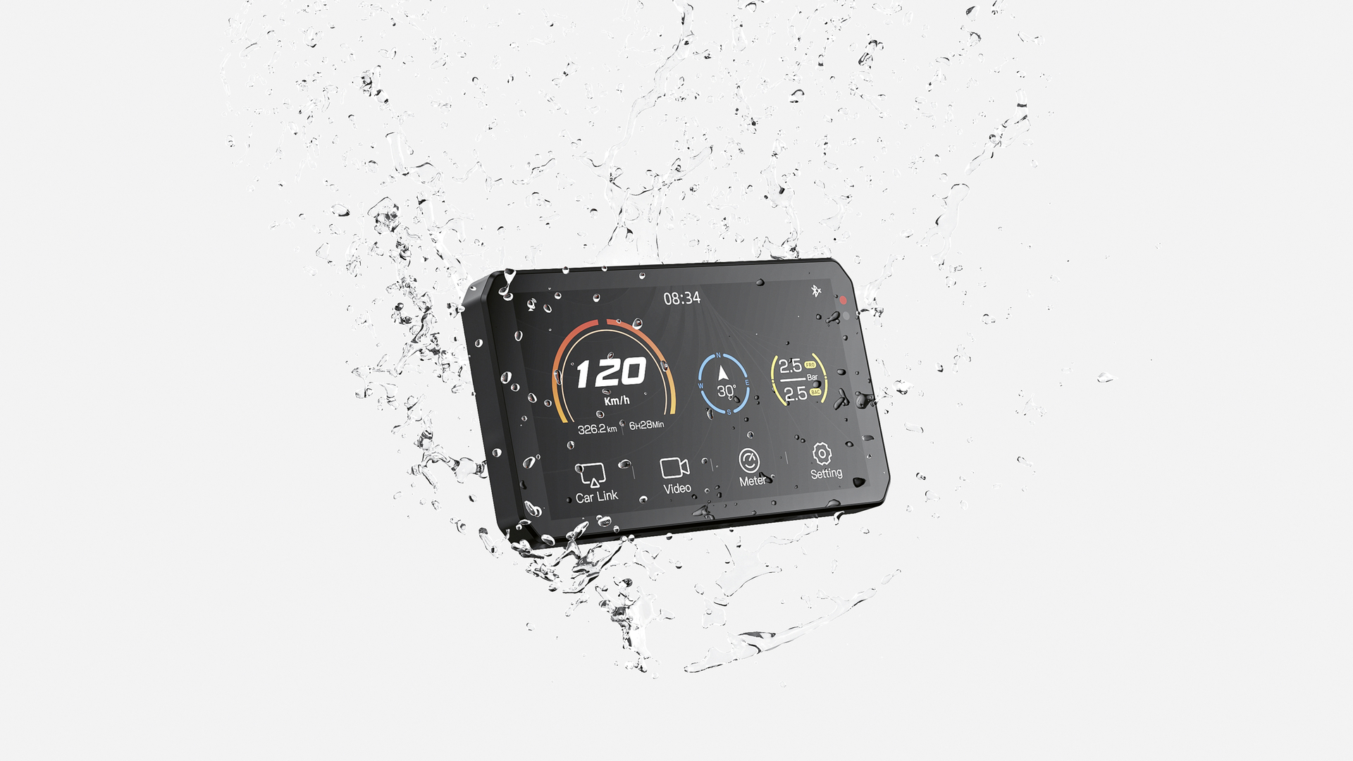 The AIO-5 motorcycle driver assistance system offers wireless screen mirroring, GPS, music and telephony, and is compatible with numerous apps. It has 1,080p dual cameras with 150-degree wide-angle and image stabilisation. AIO-5 supports 5G Wi-Fi for fast video transmission and has an AI-assisted blind spot warning system. It monitors tyre pressure and temperature in real time and automatically switches to standby mode when parked. An innovative, floating suspension technology provides excellent shock absorption.