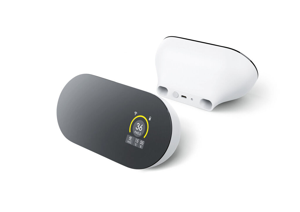 The Air Box is an air monitoring device with a classic black-and-white design. The black, self-luminous HD display is integrated into a white casing and has a viewing angle of 30 degrees. The device monitors fine dust particles, temperature, humidity as well as VOCs. Thanks to its precise built-in laser sensor, it delivers its results in just five seconds. The small device that comes with a lithium battery is easy to transport. This allows for monitoring of air quality at home, in the office and in the car.