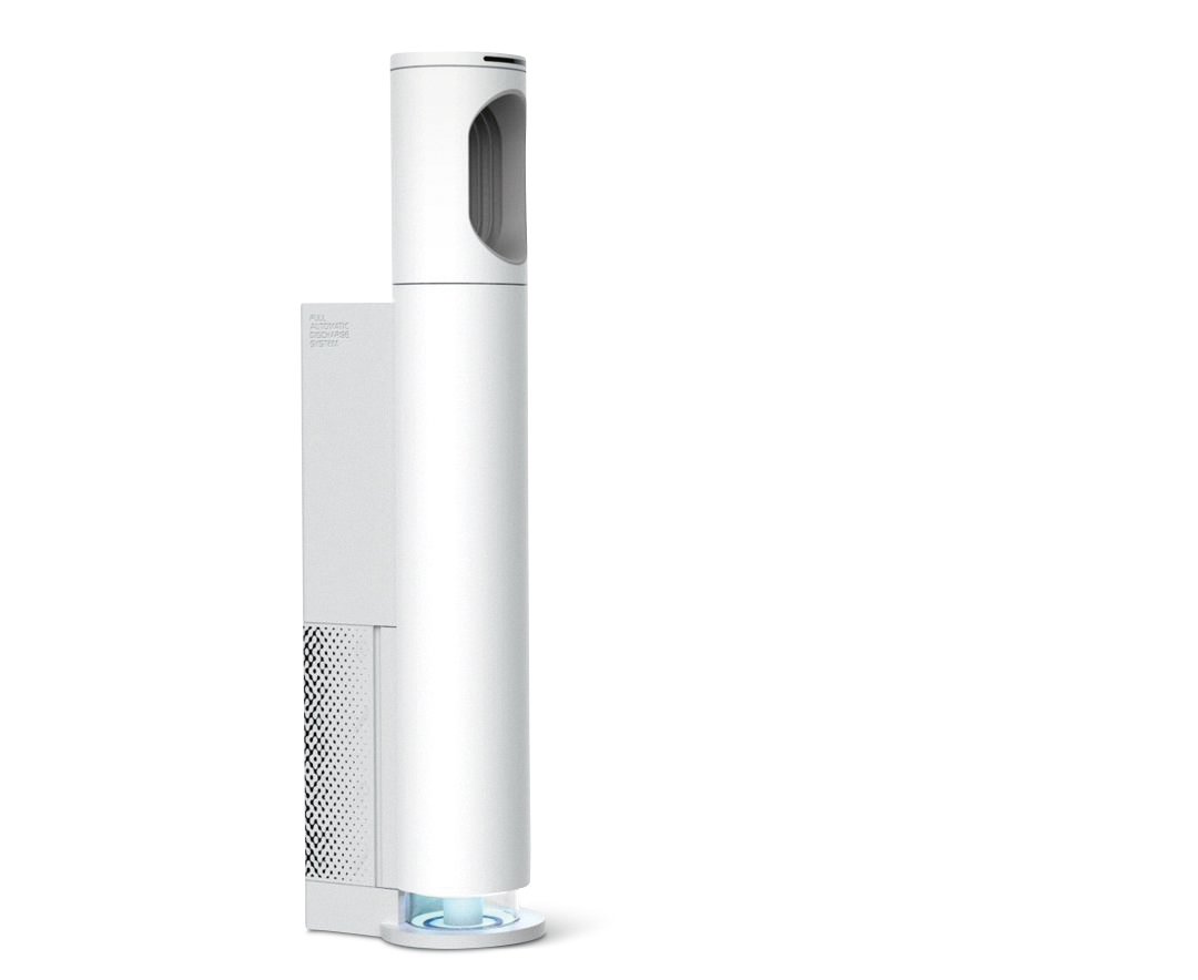 The white cylindrical body and the unusual asymmetrical shape of the ventilation grille immediately catch the eye when looking at this air conditioner. Thanks to its slim design, Air Jet AC allows for a space-saving positioning. Its sophisticated airflow management ensures a balanced, healthy indoor climate. Pleasantly cool or, if required, warm yet not overly dry air is released through the outlet into the living area.