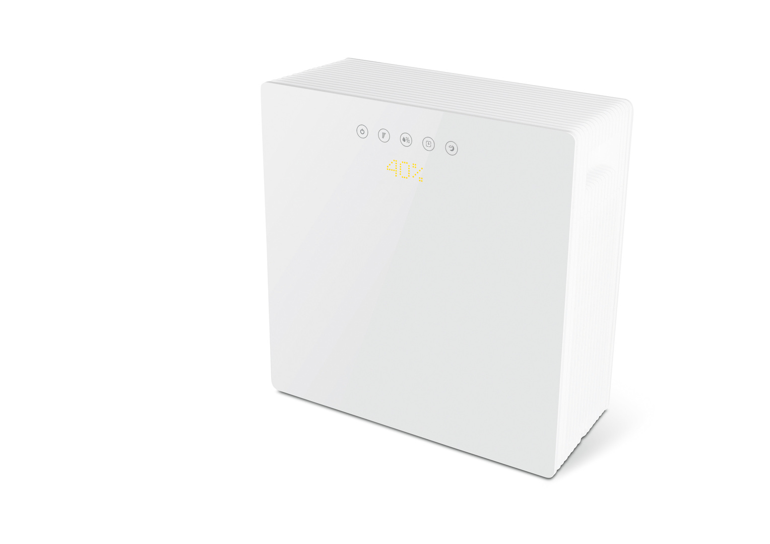 The air purifier appeals with its minimalist yet elegant design language. Another convincing feature is the housing made of recycled material.