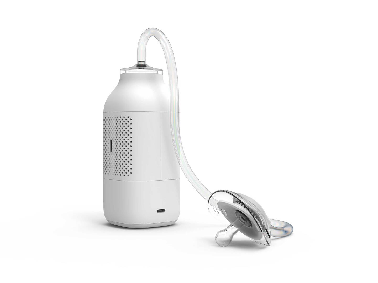 For infants, Airbottle also provides a specially-designed, multi-layer protective mask as an accessory. The mask is contactless, providing a layer of clean air right in front of the infant’s nose and mouth. The flow of air can be adjusted via a mobile app. Combined with the pacifier – which is available in different models – the mask allows infants to breathe easily and naturally. As hygiene is exceptionally important for infants, the mask can be disassembled easily, making cleaning a breeze.