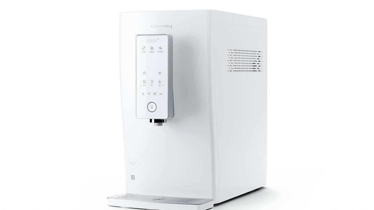 Airmega350 and Airmega450 are air purifiers whose appearance is characterised by a cylindrical shape and a horizontal pattern on the top of the housing. This merges seamlessly into a vertical groove structure on the body, which visually connects the air inlet at the top with the outlet at the bottom. The air intake is integrated inconspicuously at the rear. The user interface on the top allows you to choose between three filter types and functions and to control the air quality.