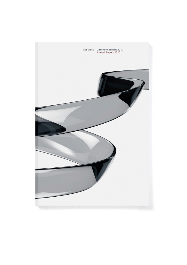 To set out and achieve new objectives – the annual report of akf bank impressively illustrates the dynamics of this process.Through­out the whole work a three-dimensional computer graphic visualises this windy road to the destination. Artful light reflections mark turn­arounds and deviations. Inside the annual report, the combina­tion and juxtaposition of strictly linearly arranged information and animat­ed illustrations create an exciting yet also harmoniously balanced and appealing visual space.