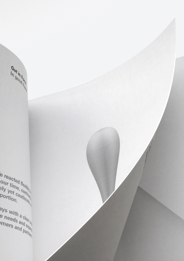 The akf bank’s annual report was created inspired by the company’s motto “Gut in Form” (English: in good form). Its design is characterised by a clearly structured typography and unambiguous imagery. As an introduction to the topics large-format images are contrasted with short, informative texts. Content and form create an appealing unit. The consistent absence of superfluous details gives this publication its high design quality.