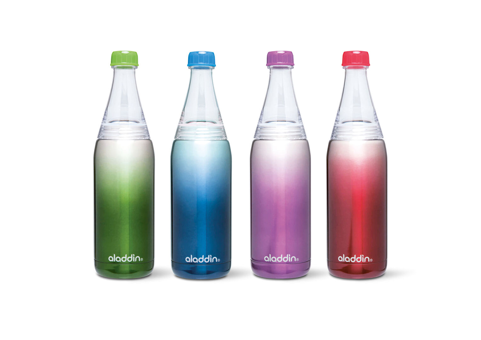 The water bottle Aladdin Fresco Twist & Go impresses by an attractive colour concept and high functionality coupled with sustainable manufacture.
