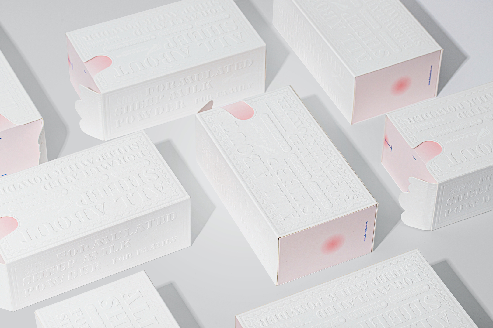 The focus of the packaging design for this brand of sheep milk powder was to enable consumers to easily distinguish it from other milk powders, as these products are relatively new on the market in China. This is achieved through a direct visual and tactile reference to the animal. For example, the handles of drawers take the shape of a lamb’s forelock, and the edges of the envelopes are cut into the form of a sheep’s ear. Thus, by cleverly adapting their structure, the boxes become square lambs. The feel of the wool is simulated by embossed characters and patterns.