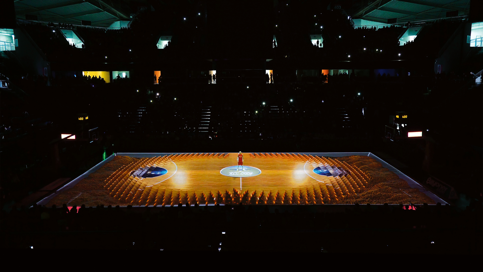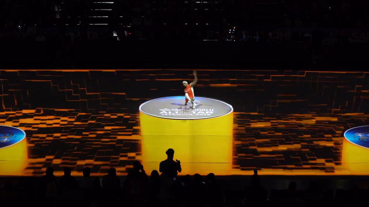 This opening show took place on the basketball court before the three-point contest at the All-Star Event 2018 in Istanbul, Turkey. Created via 3D mapping and motion capture technology, it offered an immersive multimedia experience. All animations of the show were synchronised with the performer by staging interactive choreography. The most important aspect of the performance was a virtual dance group with motion data of the performer using motion capture technology. The huge virtual characters in the show were inspired by the ING BANK’s brand image, which is identified with basketball. The characters had been transformed and reshaped through multidimensional technologies.