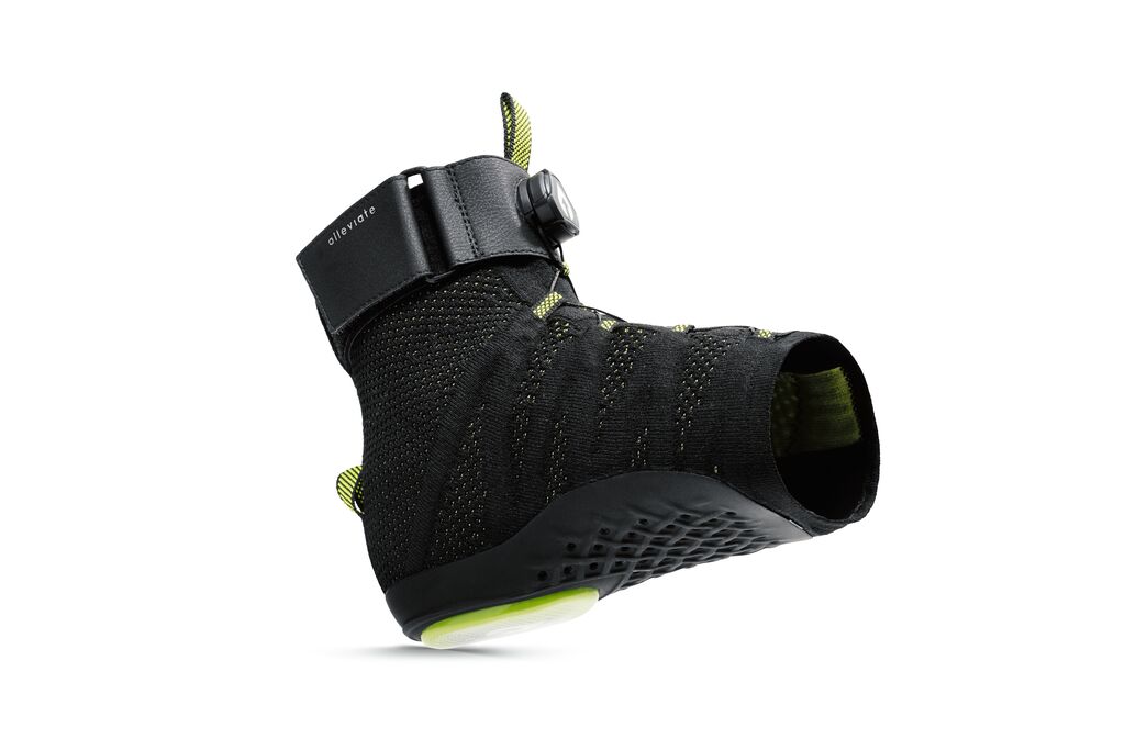 Every year, more than 200,000 people suffer from foot dysfunction. Alleviate Loft was developed for these individuals. The supportive bandage alleviates pain in the sole of the foot by supporting the arch, relieving muscles and tendons and having a cushioning effect in the heel area. The support consists of three components: a fibreglass shank to support the arch of the foot, a tight knitted sock that can be individually adjusted for a non-slip fit, and a silicone pad on the heel bone. Unlike tape, the bandage is removable and does not require a daily visit to the doctor.