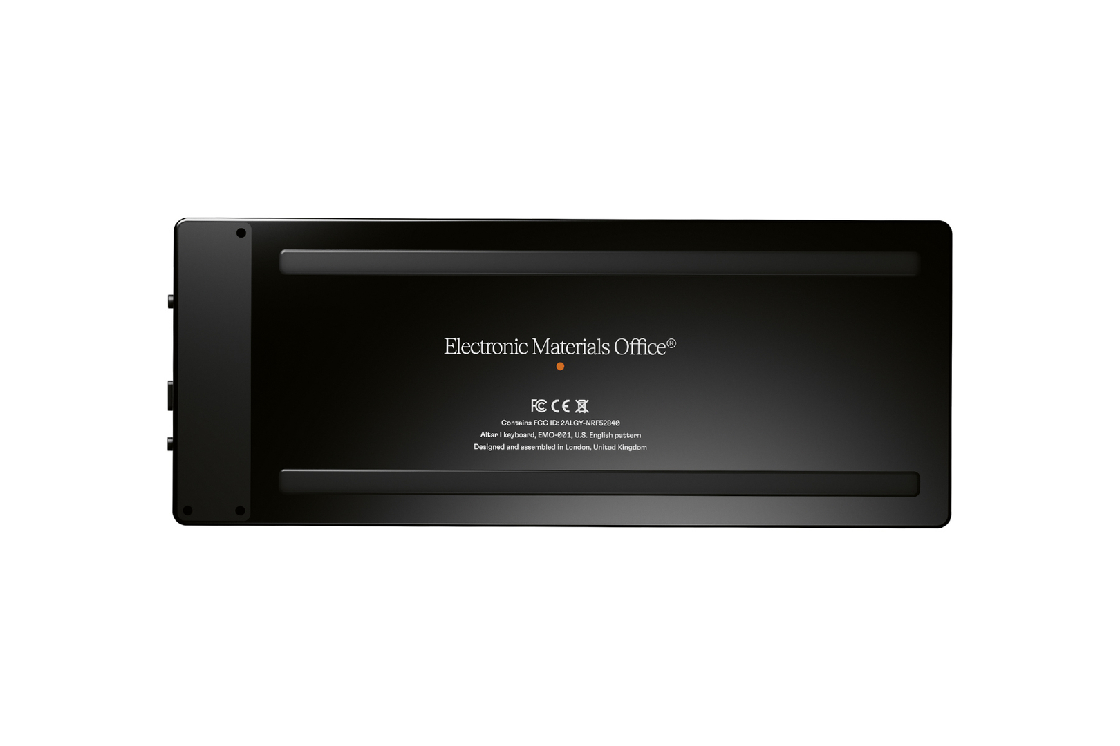Sustainable production and an innovative haptic approach were at the heart of the development of the Altar I flat, wireless computer keyboard. Made from recycled polymer, the keyboard is divided into zones whose keys are flat, recessed or raised. The lettering is set in an expressive font, while a red rotary knob for continuous volume control provides a striking colour accent. The keyboard is available in both UK and US layouts.