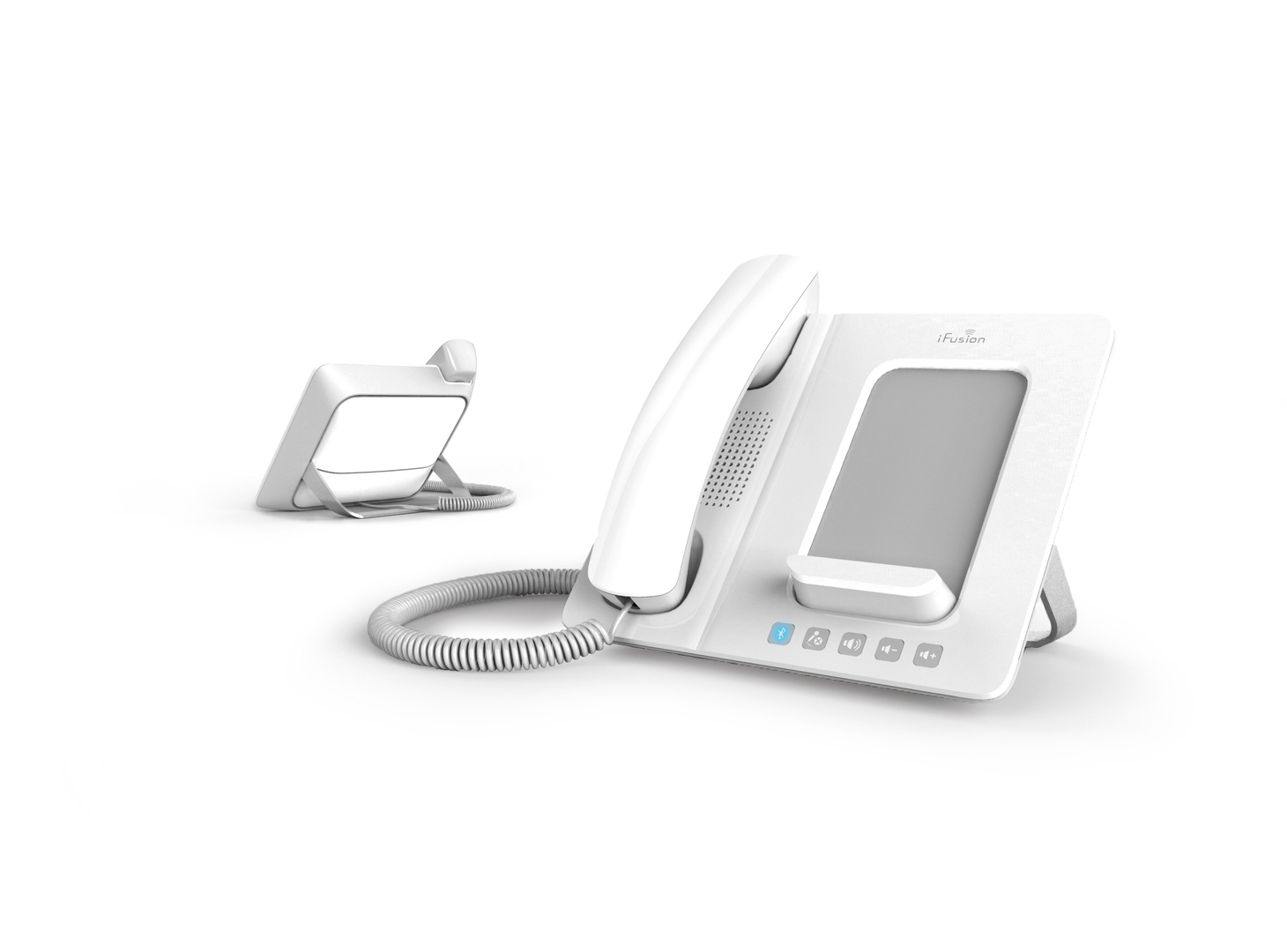 The iFusion SmartStation is a docking station for the iPhone. The smartphone connects to the station via Bluetooth. This enables users to make phone calls as if they were operating a conventional phone thanks to an ergonomic handset and a speakerphone. At the same time, all smartphone functions remain accessible. The docking station was specially conceived for use in office environments and has the advantage of the user not needing to switch back and forth between landline and mobile phone.