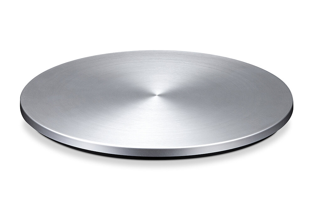 AluDisc is a pedestal for iMac or Apple Thunderbolt Display with 360-degree rotation. It is manufactured from one solid piece of aluminium and equipped with integrated high-quality ball bearings. The rubberised bottom guarantees non-slip positioning. Thus the display can be easily rotated, for instance to view screen content together with others or to reach the connectors on the backside.