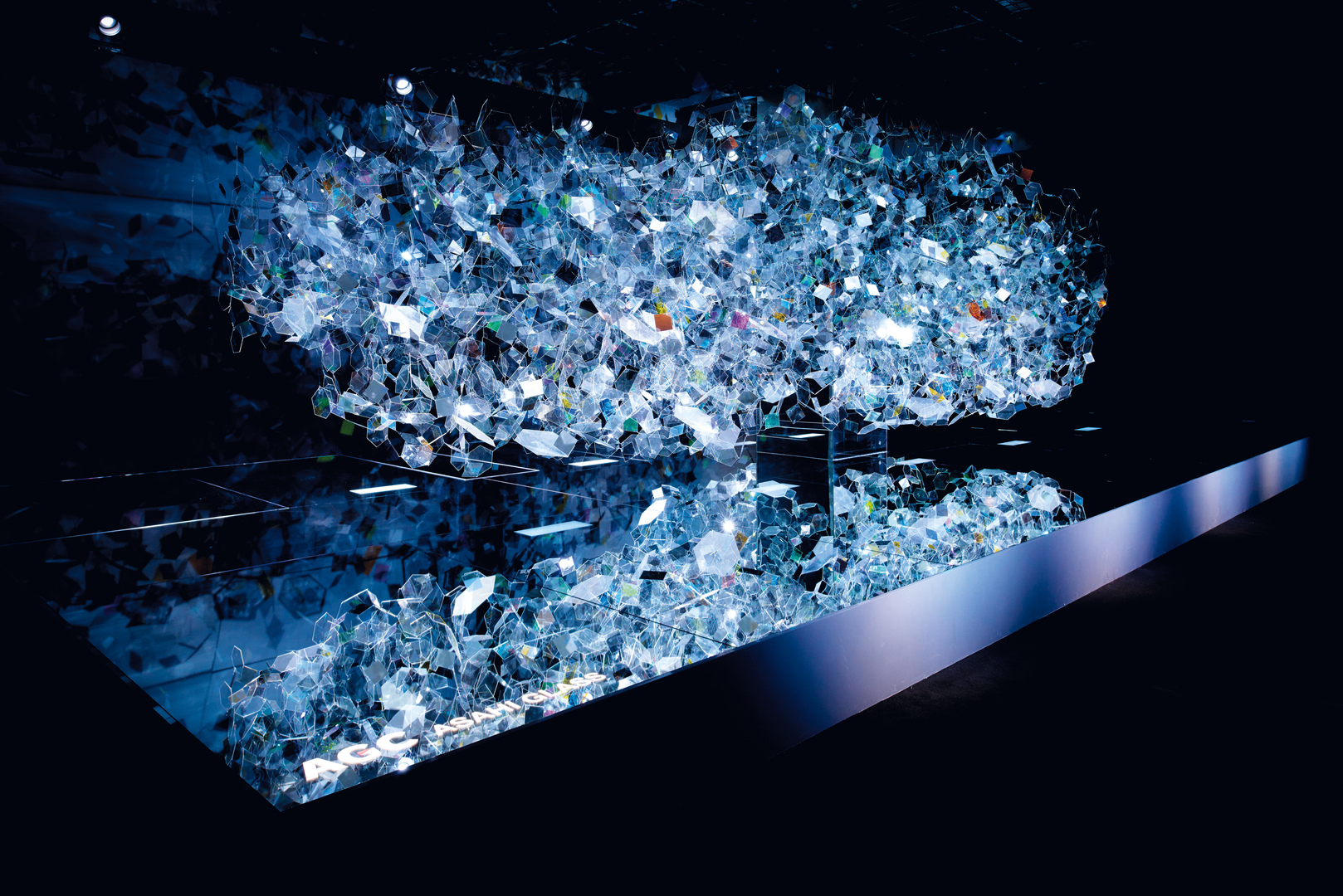 Amorphous is an installation with a design based on the amorphous molecular structure of glass that has been enlarged to one billion times its actual size. Around 5,000 pieces of thin, chemically strengthened glass were used to create the installation, with subtle vibrations expressing the molecular movement. The result is that each angle reveals a different hue, with every surface reflecting the light. Although onlookers can clearly see their reflection as if looking in a mirror, the glass also allows the onlooker to see through it and admire the scenery on the other side. The thinness of AGC’s chemically strengthened glass has created a light, flexible, expressive glass installation, which inspires and shows the future possibilities of glass.