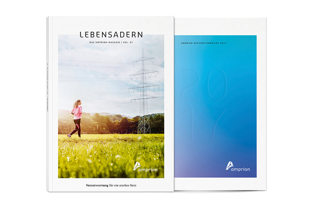 Amprion is a transmission system operator in Europe. Its 2017 annual report was published together with a redesigned magazine. The title “Lebensadern” (Lifelines) refers to power lines, presented in a figurative sense as the lifelines of the national economy. The first edition after a design relaunch is dedicated to the responsibility of the company at a time when energy policy is reversing. The colour palette, featuring purple, blue and pink tones, highlights, especially through the colour progression, the optimistic nature of the magazine. A clear, reduced design ensures good legibility in the financial chapter.