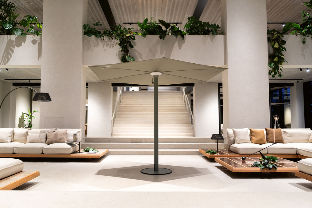 The innovative design of the Anamon parasol combines comfortable sun protection with stylish outdoor lighting. Its canopy unfolds from top to bottom, allowing it to be opened without having to move tables or chairs. Powered by an easily rechargeable battery, the parasol’s dimmable LED light provides pleasant lighting in the evening hours. The Anamon is durable, weatherproof and available in a variety of colours, enabling it to harmonise with any outdoor furniture.