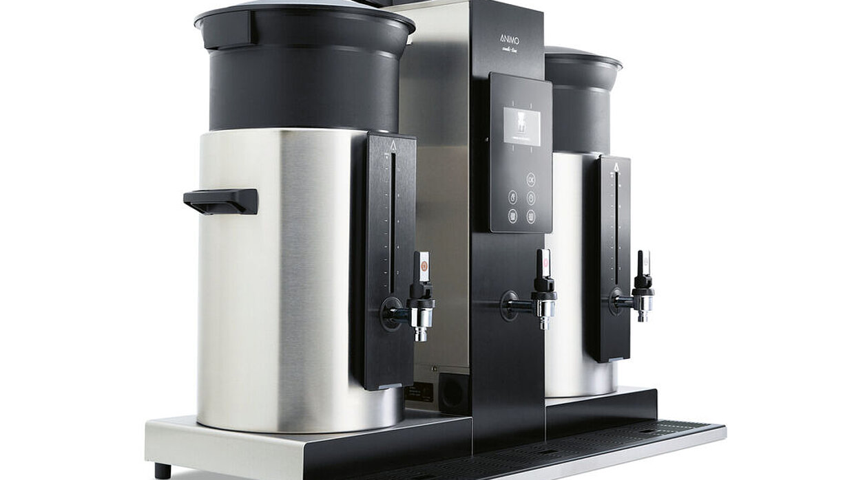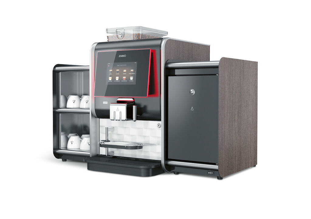 The Animo OptiMe is a very compact, professional fully automatic coffee maker. It was developed especially for small and medium-sized businesses, offering a capacity of up to 125 cups a day. High flexibility is key here: the machine offers a user-friendly interface, various colours and housing panels, the option of personalising the settings via an app as well as accessories such as a milk cooler and a heater to warm the cups.