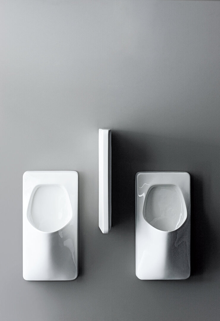 The design of the Antero urinal is characterised by the harmonious tension of the exactly defined outer edges and an organic interior form. The ceramic siphon cover integrates smoothly into the puristic form. The geometry of the inner basin is optimised to retain urine splashes on the inside. Thanks to the patented flushing action of the back wall, the whole urinal can be flushed clean with less than one litre of water. The intelligent hybrid control provides various cleaning modes.