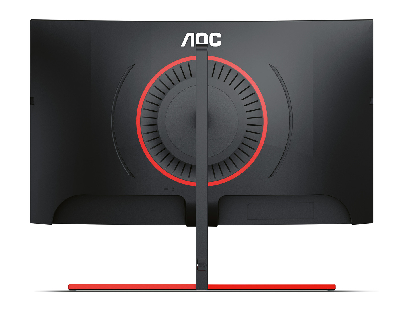 The striking feature of the AG273 gaming monitor is the ring-shaped RGB lighting on the rear side around the ventilation slots. Matching this colouring, the lower part of the stand is also kept in bright red, underlining the dynamic impression and pointing to the high performance of the monitor. A practical detail is the integrated handle complementing the monitor support in a sensible way. The complete stand can be easily disassembled so that the unit may be stowed away comfortably in the provided travel case.