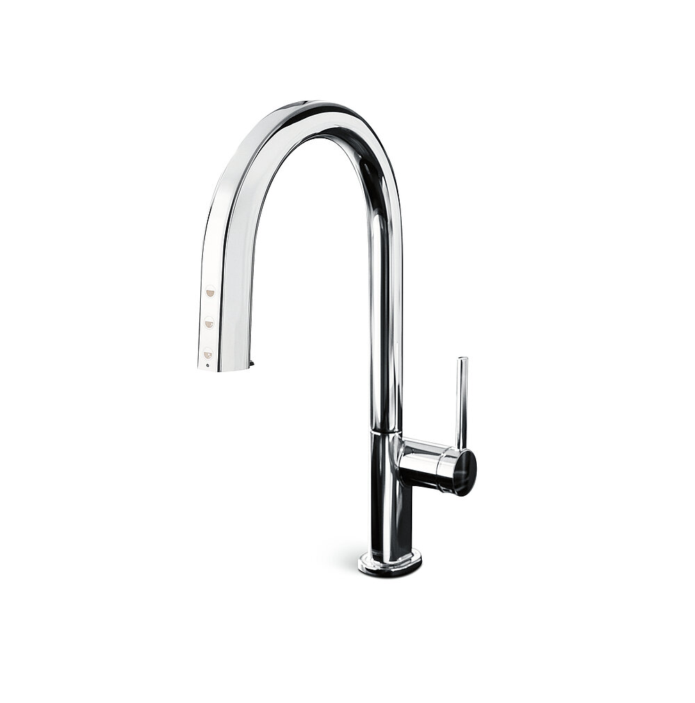 The minimalist Aqittura M91 SodaSystem conveys a timeless appearance that fits into various kitchen environments thanks to three surface finishes for different uses: Mattblack, Stainless Steel Finish and Chrome. Digital selection keys for sparkling, medium or still water are discreetly integrated into the outlet and ensure particularly convenient use.