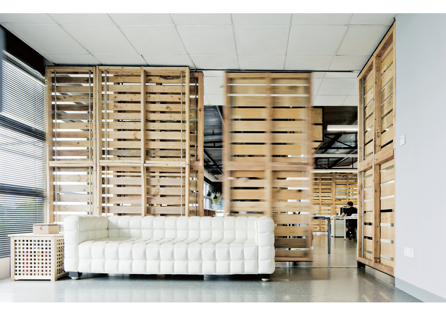 Since the city of Shenzhen, China, leaves behind a lot of construction waste in the course of its rapid development, this project uses recyclable wooden pallets as the main construction material. It thus explores the sustainability of the materials, also hoping to draw the attention of the design industry to this issue. Thanks to the wheels and the tracks, some wooden partitions in the office are flexible. This lends mobility to the space, intended to fulfil the future demands of multifunctional office zoning and sunlight adjustment.