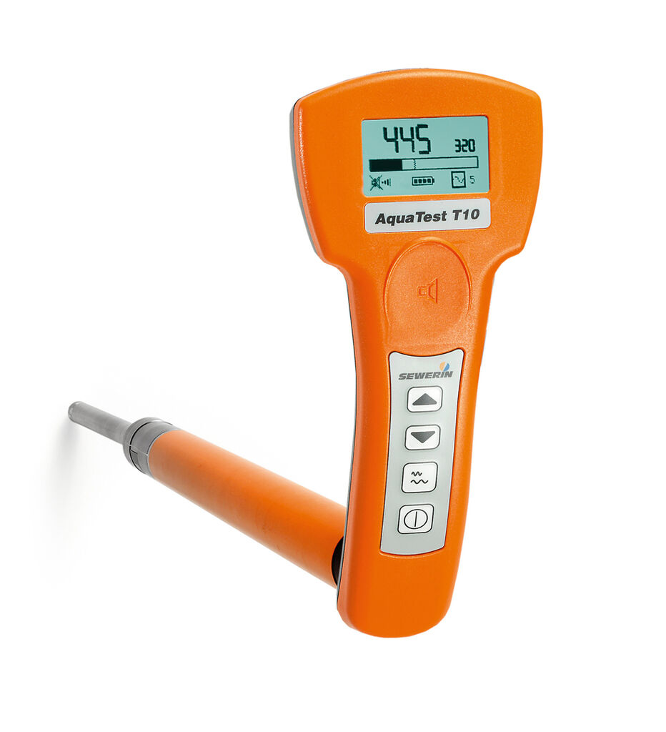 The AquaTest T10 is designed for electro-acoustic leak detection in water pipe networks. It is the first test rod of the manufacturer for which no additional receiver is required. Making use of the unique SDR radio technology (Sewerin Digital Radio) in combination with radio headphones, no more cables will get in the way. The headphones are activated by a special sensor area. The handle has an integrated display, on which the volume of the picked up noises is displayed in numerical values.