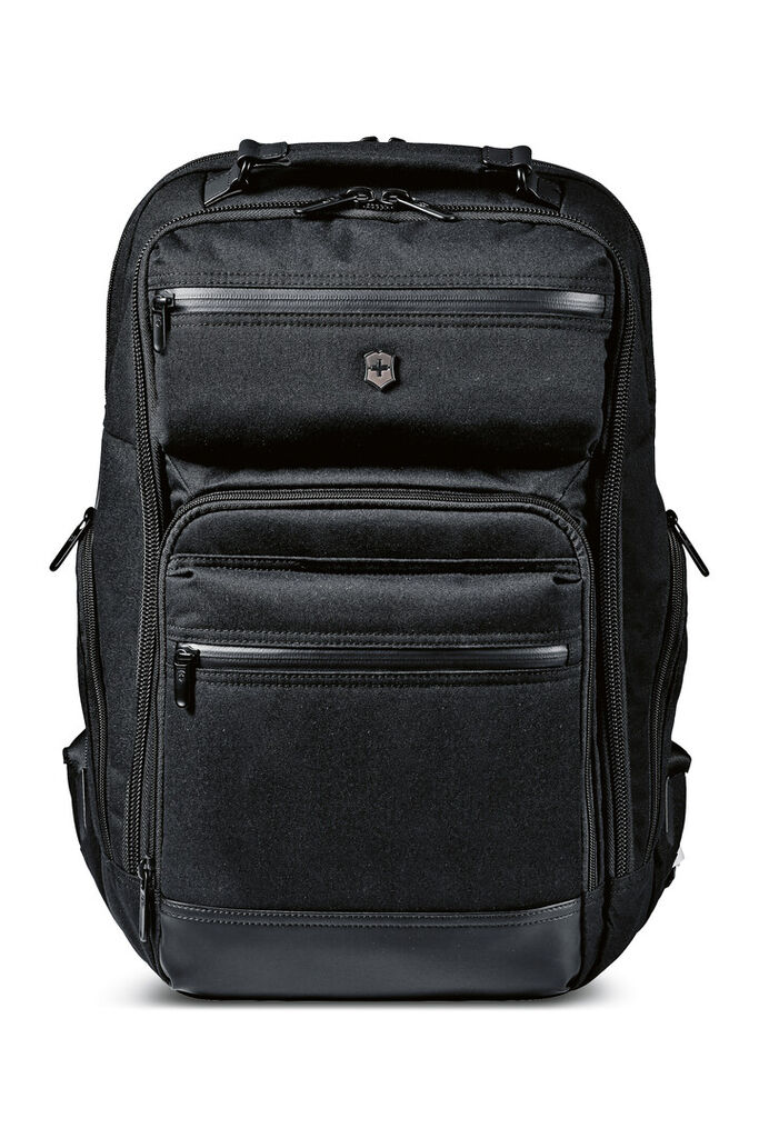 Elegant textiles and a traditionally vegetable tanned leather trim characterise the design of this robust laptop backpack. All external zip fasteners are watertight and skilfully crafted. In order that the backpack can be carried comfortably, the back panel and the easily adjustable shoulder straps are elaborately upholstered. There is room in the inside for a 17” laptop and a 10“ tablet. In addition to the two side and front exterior pockets with organising panel, there are many inside compartments.