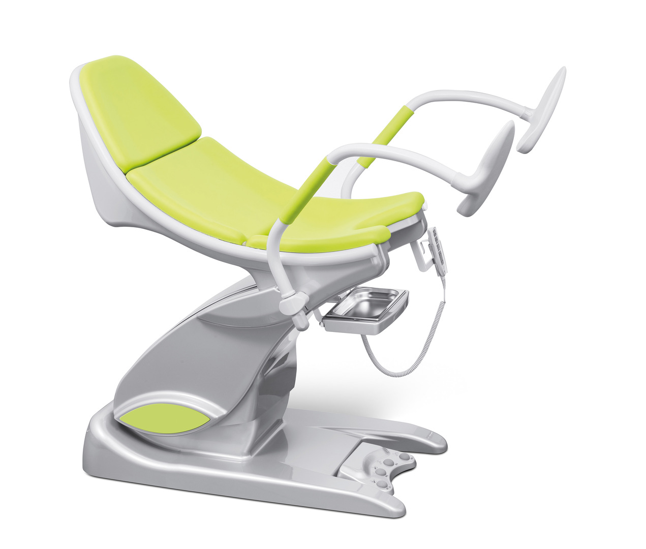 The examination chair arco impresses with its open construction and colourful design, which fosters visual lightness in an otherwise functional medical environment.