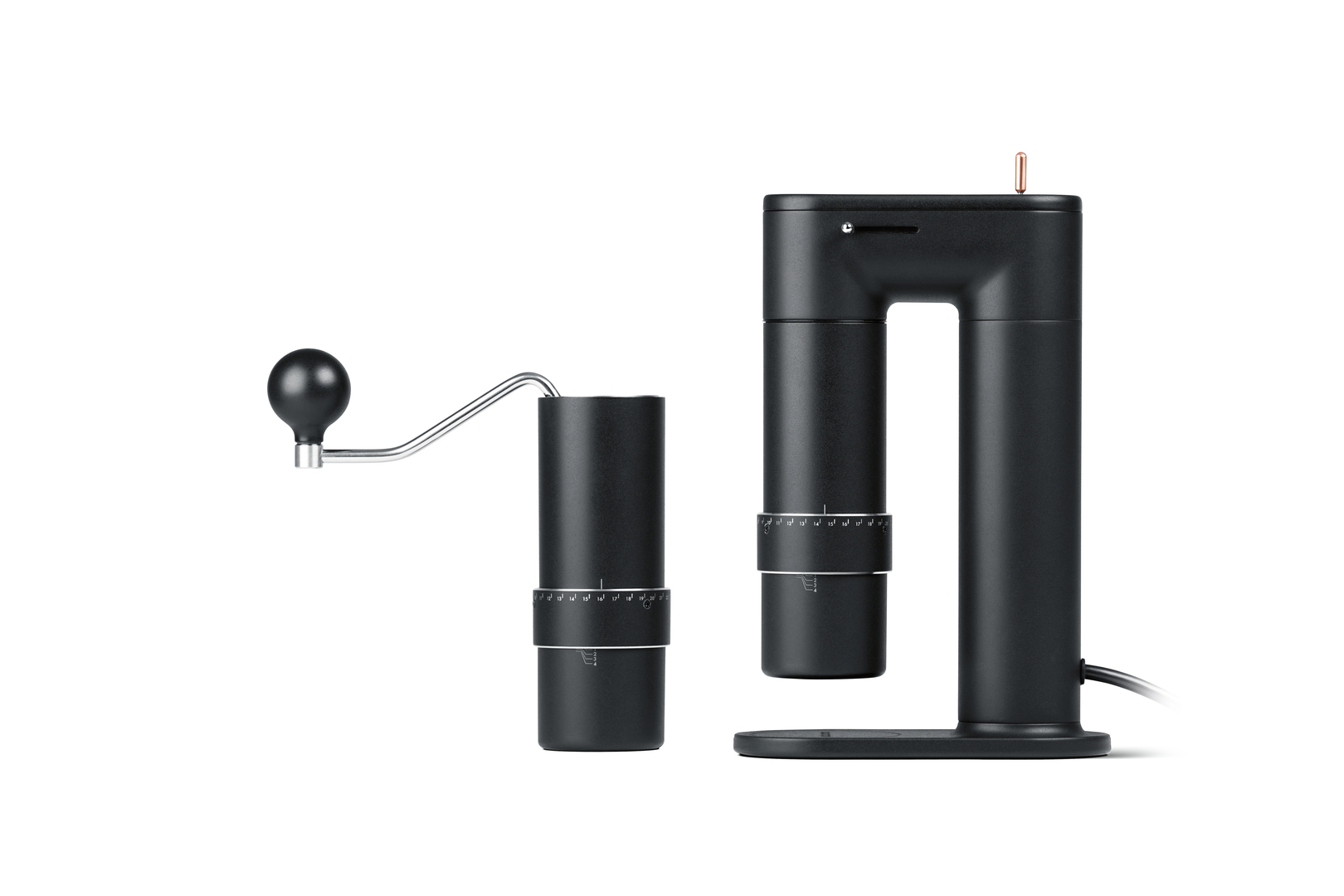 This product is designed for grinding coffee both by hand and by using an electrical appliance and offers up to 240 settings. For this purpose, it has a grinder that can be removed from the electric drive and connected to a hand crank. The body of the drive is designed space-savingly and stands out with a striking design language. A matt-black surface finish emphasises the body and the grinder equally.
