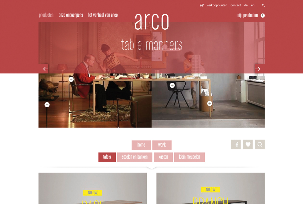 Family business Arco has been making high-quality furniture for more than 100 years, focusing on providing technical innovation and design at a high level. Not being distant and elitist, its creations are made for use on a very human scale. Celebrating the enjoyment of this use with the theme “table manners”, the website shows people who are working hard, fighting, polishing, doing arts and crafts or making love on tables. With a big dose of humour, these split-screen interactive video clips invite website users to control the course of events. Seriously, and yet tongue-in-cheek, the website stages apparent contradictions, yet also invokes that the quality of the Arco products pays off “seriously”. To underline this, the furniture is displayed as appropriate for design products: cleanly and statically. By clicking on the heart, users can easily create their own collection of favourite products. Presented in an entertaining, diversified manner, the website possesses a surprising and discrete design.