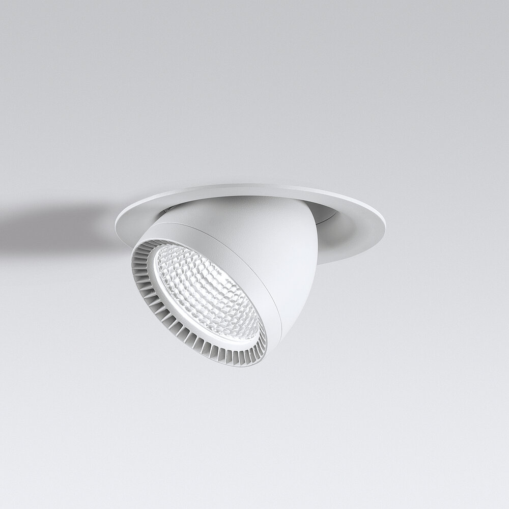 Light plays a central role in the perception of a room. Therefore, sophisticated concepts are often created in interior design to achieve a desired atmosphere. The Argo recessed spotlight combines a homogenous form language with a perfected concept of modularity. In a product category which is more technically oriented, Argo stands out with its organic form and soft appearance. This recessed spotlight, which is powder coated, uses an effective COB-LED technology and thus consumes very little electricity. Furthermore, the principle of various, easily exchangeable reflectors is well thought through. With them, it is possible to achieve a punctiform, normal or wide beam of light. The Argo recessed spotlight can be swivelled out up to 90 degrees and can be rotated through 360 degrees. This functionality, which fits circumstances, makes it very flexible. The user can intuitively adapt it to rapidly changing situations such as occur regularly in shop design. Argo’s coherent concept offers so many lighting possibilities that, through it, the recessed spotlight experiences a fascinating reinterpretation.