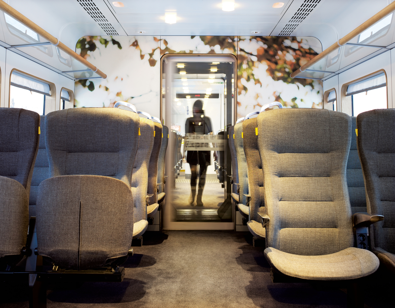 The development of the Arlanda Express started with the vision for a new design to strike passengers and train industry with an attractive and convenient journey. All single elements, such as new lighting, new seats, luggage racks, as well as bar seating for informal meetings or laptop use, are particularly designed for this train. The “Hide Tech” technology providing trip information is hidden behind partition glass walls, becoming an integrated part of the interior. The use of natural and solid materials and a passenger-friendly design create a bright and warm lounge atmosphere.