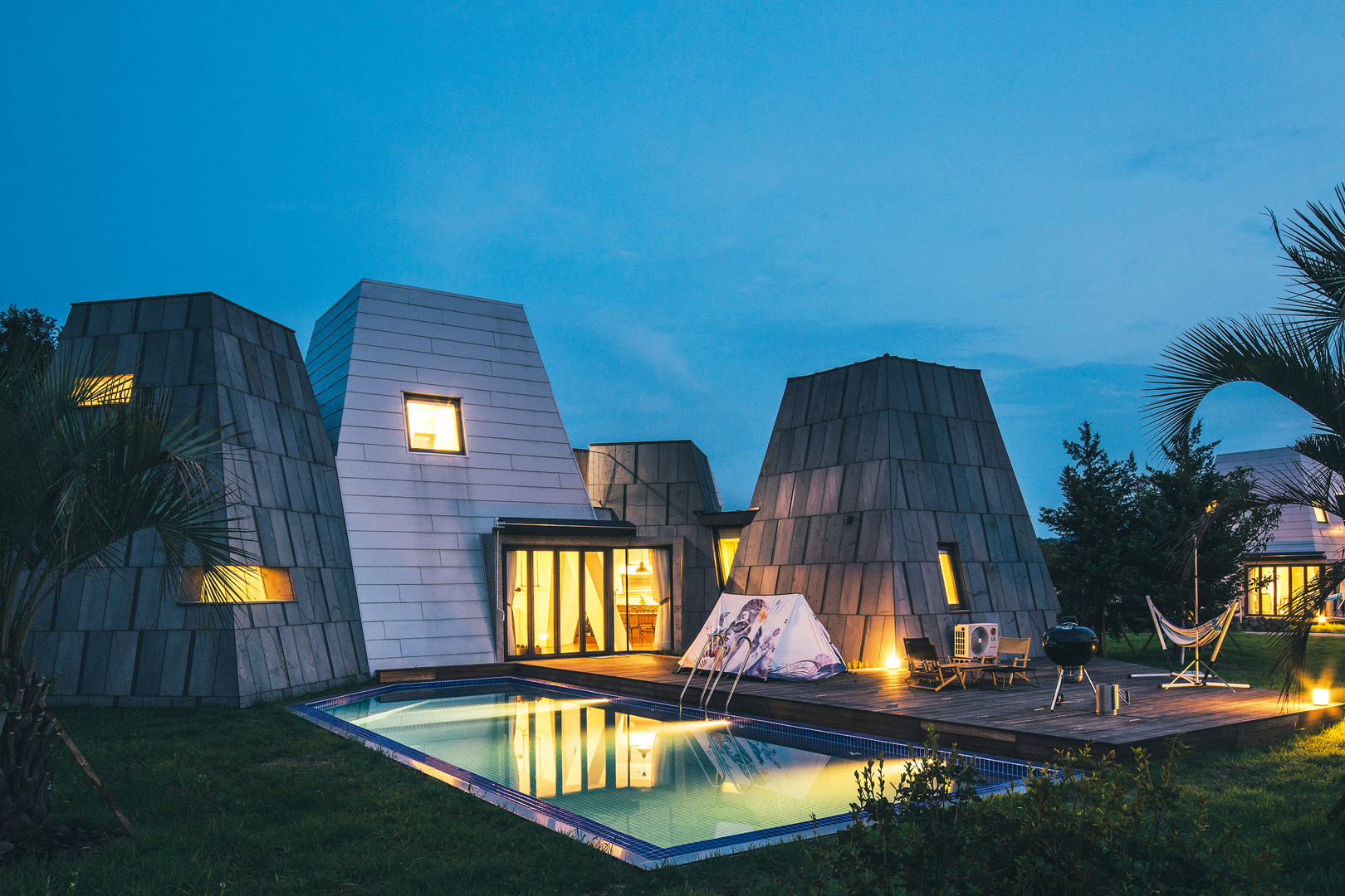The architectural concept of Around Follie is based on the idea of being seamlessly embedded in the natural environment and culture of Jeju Island in South Korea. It aims to exhibit the freedom of camping and the spaces of private relaxation on the island. With the motif of the stone pagoda, which is designed to protect the village’s most common heritage in Jeju, the area gives visitors access to a wide range of outdoor activities and culture. Breaking the boundaries of traditional pensions and campsites, Around Follie has been conceived to offer a new experience of providing private relaxation, camping culture and Jeju characteristics as a new concept of outdoor stay.
