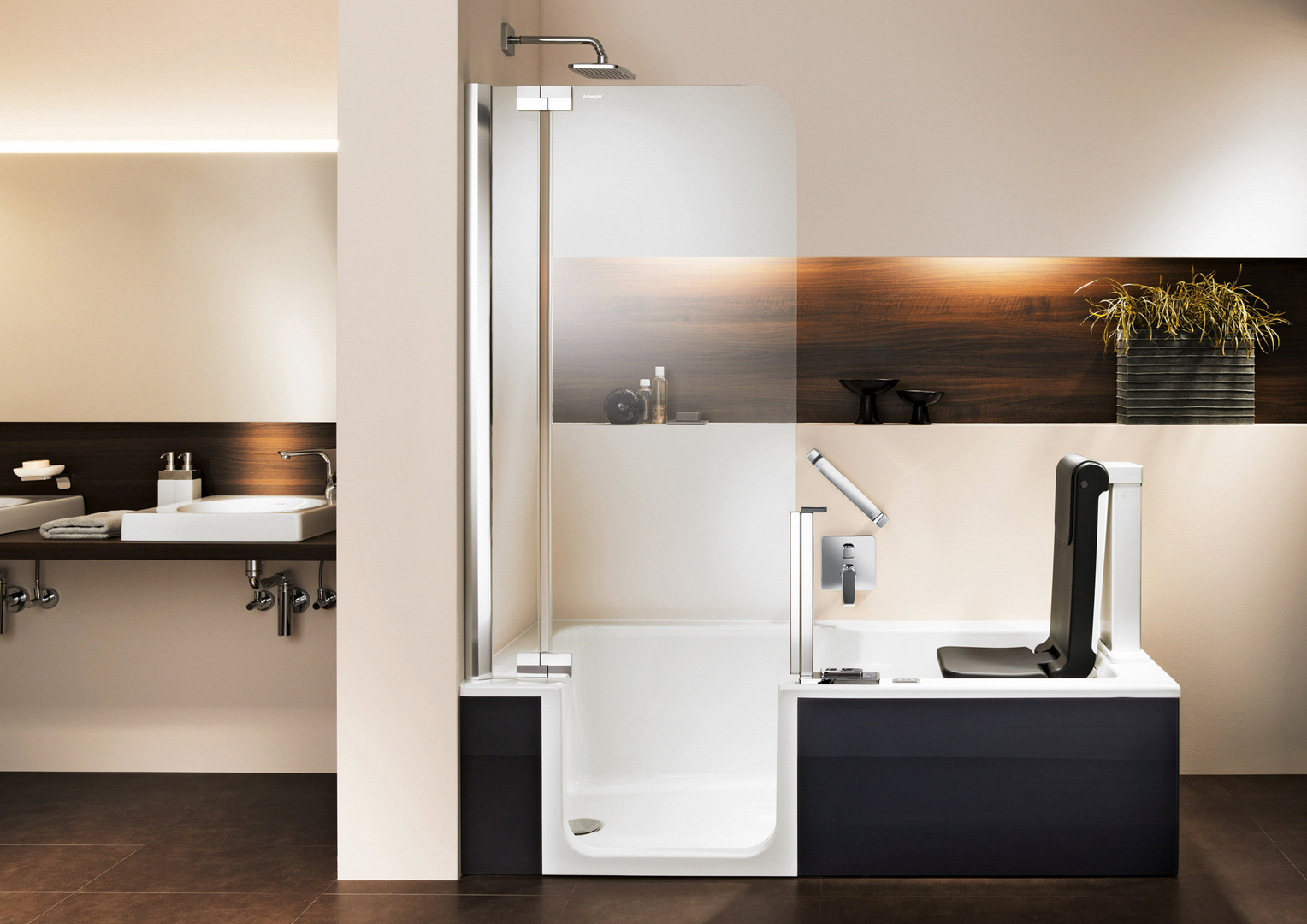 This shower bathtub with integrated door and lift seat helps overcome barriers while getting into the bath. The comfortable lift seat makes the difficult process of sitting down and the even more strenuous task of standing up easier. The low height of the seat allows users to almost sit on the base of the bath. An anti-slip surface, maximum surface area, as well as the rounded edges of the seat and backrest make the seat comfortable and pleasant to touch. If not needed, the seat can be folded up and used as a compact backrest.