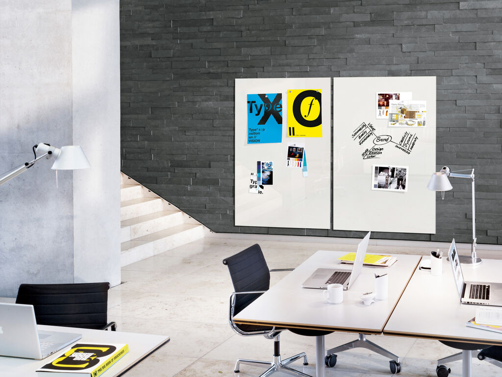 The artverum magnetic glass board facilitates presentation and organisation at a high level. In terms of function, the reduced, appealing board is also an elegant alternative to classic whiteboards. Available in different sizes, these planning and organisation boards are magnetic, suitable for being written on by hand, and arranged either as single elements or a wall ensemble. The TUV- approved safety mount without brackets emphasises the elegance of the frameless magnetic boards, which are perfectly suited to offices, meeting areas and conference rooms.