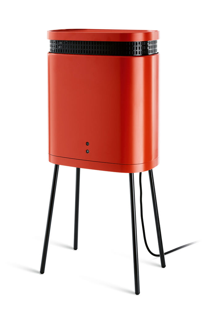 Not only depending on the season and the position of the sun, the temperature and climate in indoor spaces are constantly changing. Against this backdrop, the Astro embodies an impressive reinterpretation of the functionality and aesthetics of a classic fan heater, as it also serves as an air purifier. Designed as a thermo ventilator with a small footprint, it presents itself as a furnishing element that can be positioned almost anywhere. Astro delivers heat to where it is desired or required and is capable of cleaning the air at the same time. The elements of heat and air, two primary needs for human beings, represent the essence of this object, which contains the technology required to independently perform the two functions of heating and purifying the air in a given interior. Operating Astro is self-explanatory, with the upper part featuring the ventilation slots lifting gently when activated. Equipped with a class F7 carbon filter, the device reliably and highly efficiently cleans the air of pollen, bacteria, spores and undesired odours. Thanks to its simple and minimal design, which exudes a slight retro appeal, Astro blends in effortlessly with both home and office environments. Its double function makes it suitable for use at any time of the year, not only for heating in winter, but even in summer for achieving a clean indoor environment with purified air.