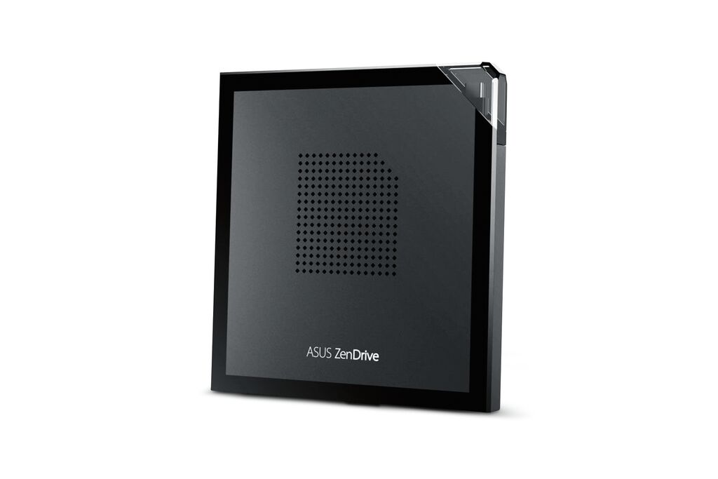 The ASUS ZenDrive V1M is an external DVD drive and writer. The all-round glossy frame and the diamond patterning on the upper housing lend the drive an elegant look and make it an eye-catcher on the desk. Cleverly integrated is a cord-storage solution on a hinged corner, which provides space for the 24 cm long connecting cable. In addition to CDs and DVDs, the drive also supports M-Discs suitable for long-term data storage of up to 1,000 years.